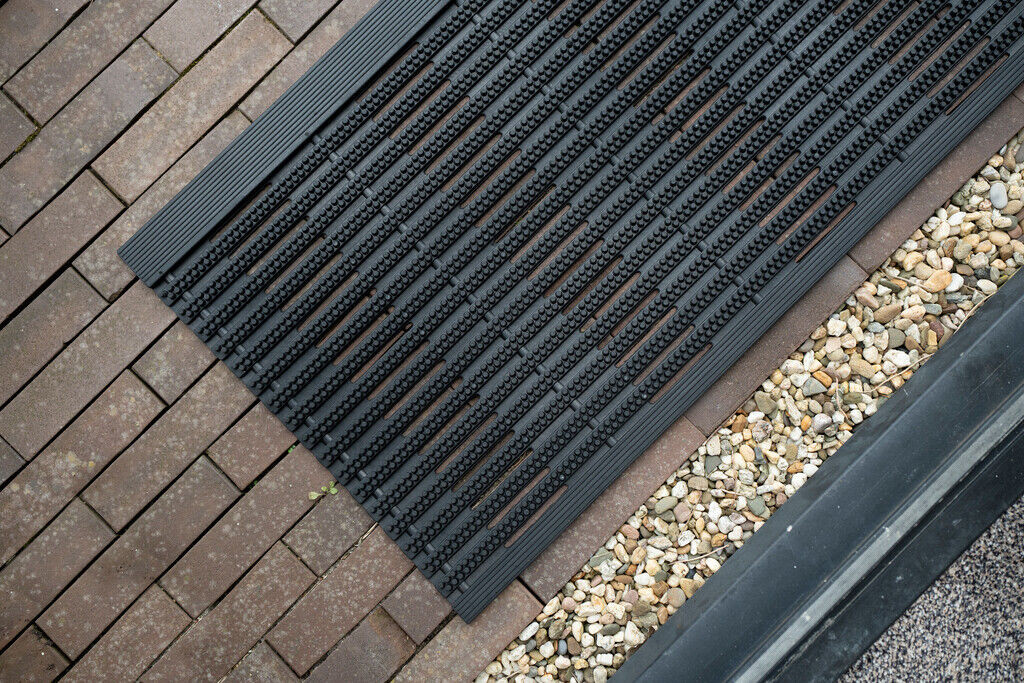 A teljes egészében gumiból készült kialakítás kiemelkedő tartósságot és ellenállóképességet biztosít. A vulkanizált gyártási technológiának köszönhetően a termék rendkívül strapabíró, ellenáll az időjárás viszontagságainak, így esőben, hóban és erős napsütésben is megbízhatóan használható. Ezáltal hosszú távon védi a bejárati burkolatokat és hozzájárul az ingatlan értékének megőrzéséhez.