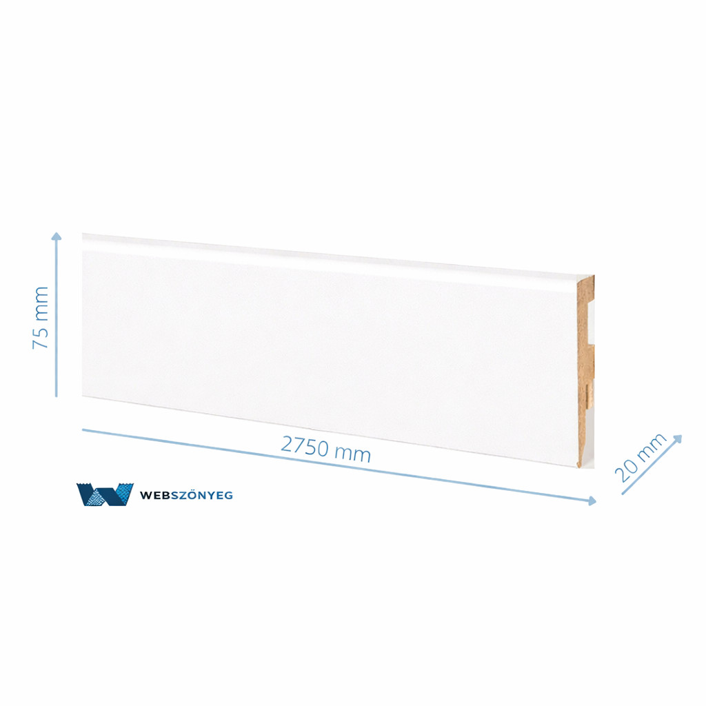 75mm magas, 275cm hosszú, 20mm mélységű, exkluzív szegélyléc! Napjaink közkedvelt és egyre elterjedtebb szegőléc típusa az "AMERIKAI" és "ANGOL" divat szerinti fehér, magas szegélyléc. Modern és egyben klasszikus kialakítású. Exkluzív hatású, egyedi látványt kölcsönöz a helyiségnek. Könnyen harmonizál a fehér falfelülettel, ajtókerettel, és nagyon szép kontrasztot ad minden színnel kombinálva.