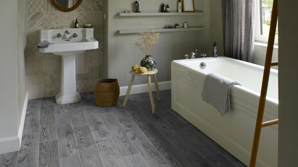 Tekercses vinyl (PVC), "CARTER" szürke, fa mintás, 300cm