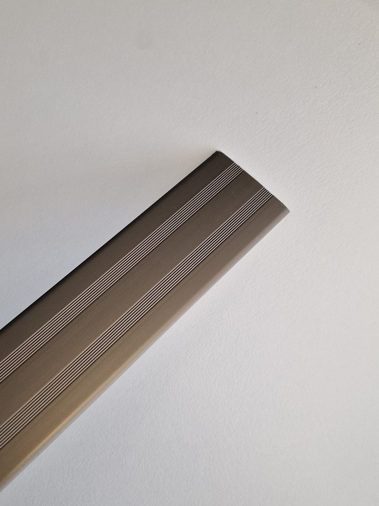 Öntapadós burkolatváltó padlóprofil. Küszöbök helyére, burkolati anyagok találkozásához, áthidalásra, vagy hézagok fedésére szolgál. A profil hátoldaláról csak le kell húzni a takaró fóliát és egyszerűen lenyomni a szükséges helyre. Kiválóan tapad, esztétikus, egyszerűen lehelyezhető. Kézi fűrésszel, dekopírfűrésszel, vagy bármilyen fém/alumínium vágására alkalmas kéziszerszámmal könnyen méretre vágható. Aluminium proljaink ezen csoportja segíti az átmenetet a különböző típusú padlóburkolatok között, szükség esetén biztosítva a szintek kiegyenlítődését is.