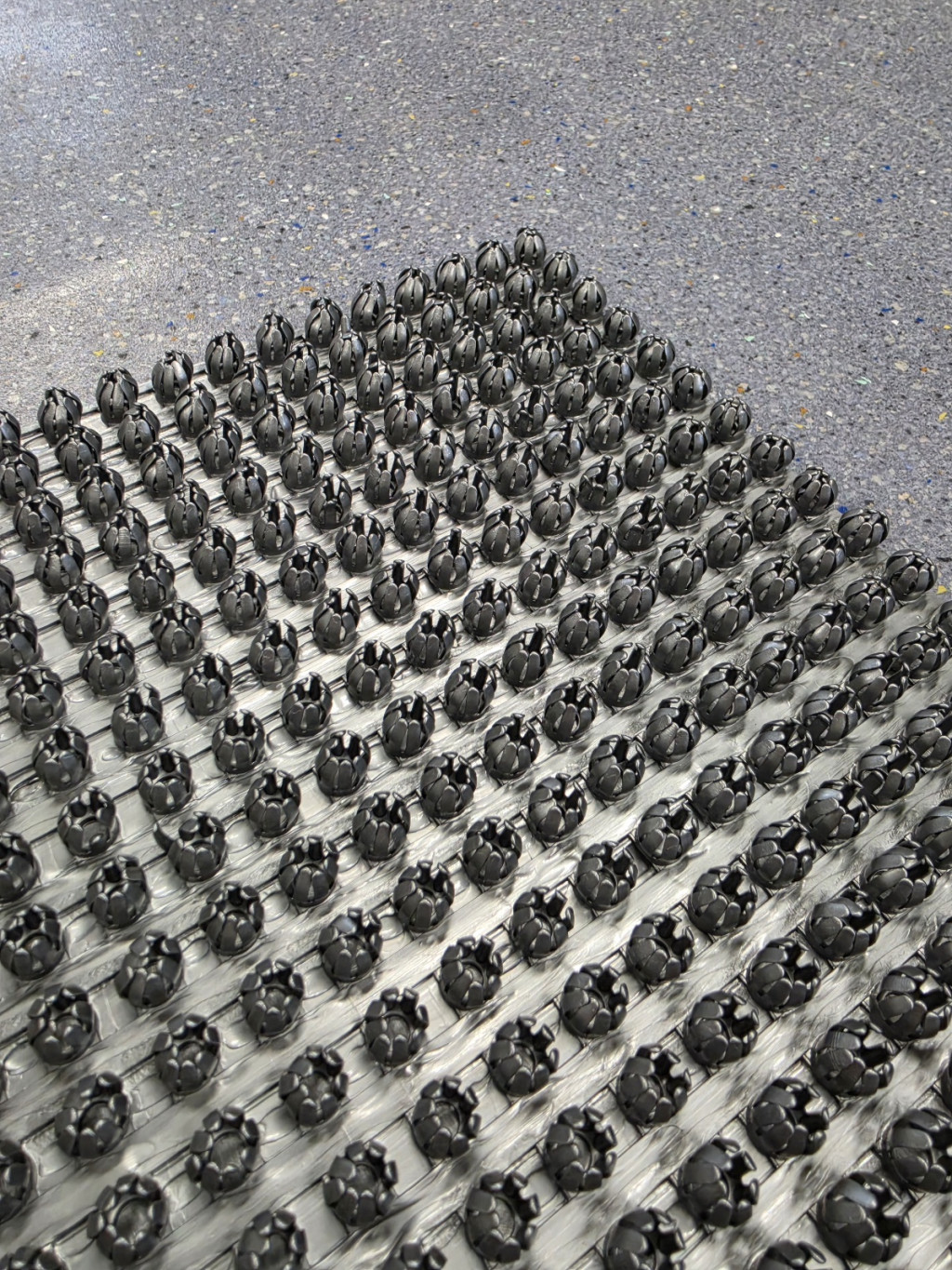 A termék modern fröccsöntési technológiával készül, amely biztosítja az egységes szerkezetet és a kiemelkedő kopásállóságot. A 100% polietilén alapanyag rendkívül strapabíró, így a kültéri lábtörlő ellenáll az esőnek, hónak, fagynak és az UV-sugárzásnak is. Ennek köszönhetően a Queens lábtörlő egész évben megbízhatóan használható, nem repedezik, nem deformálódik, és hosszú távon is megőrzi funkcionalitását. A speciális kialakítás segíti a durva szennyeződések mechanikus eltávolítását, így különösen hatékony nagy forgalmú bejáratok esetén.